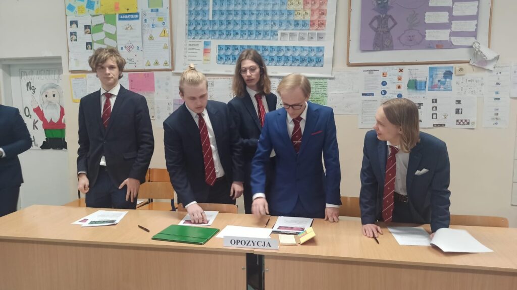 LICEUM/TECHNIKUM: Uczniowie naszych szkół ponadpodstawowych nie zwalniają tempa i przysparzają nas o dumę. Po sukcesie Dominiki Knop w Olimpiadzie Solidarności, reprezentacja w składzie: Dawid Krzoska, Szymon Kuczek, Jakub Piontek, Michał Raczyński i Jakub Tendera w piątkowym Międzywojewódzkim Turnieju Debat Oksfordzkich świetnie poradziła sobie z tezami dotyczącymi ekologii, zielonej energii oraz neutralności klimatycznej.Wprawny język oraz celna argumentacja chłopaków zaowocowała III miejscem szkoły w jakże prestiżowej rywalizacji, która odbyła się w ramach V Festiwalu Praw Człowieka.GRATULUJEMY!